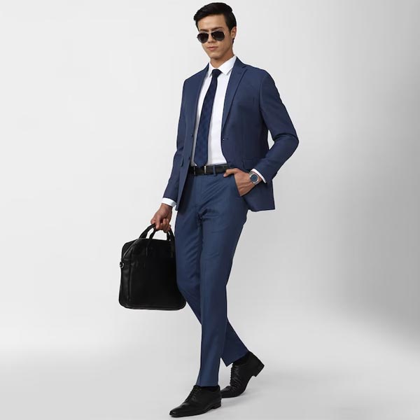 Men 2 Piece Navy Blue Slim-Fit Single-Breasted Formal Suit